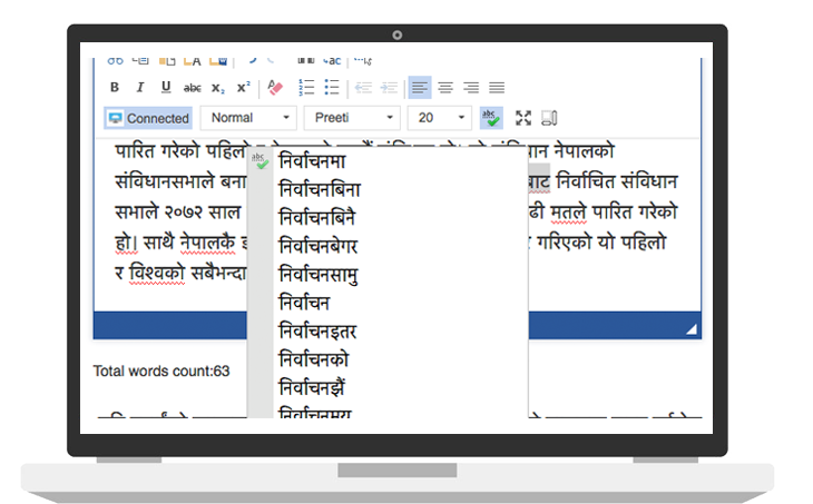 NepSpell uses the state-of-art technology to check the spelling error and to look up for the suggestion, which gives the incomparable performance. It utilizes the standard developed by Nepal Academy for the word morphology and grammar rules.